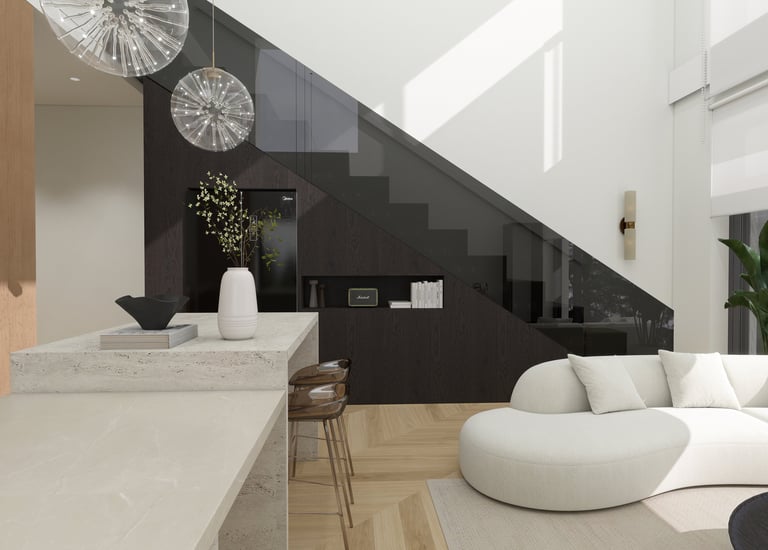 A minimalist, wabi-sabi inspired interior where mood and style are defined by natural materials, rich textures, and the warmth of wood.